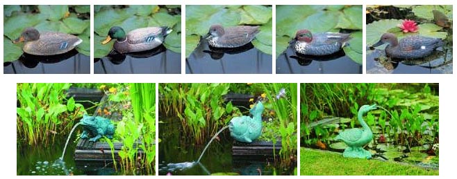 not every garden lake can be proud of its settled down live ducks, swans, night-birds, pelicans, frogs and other animals. Our company offers for you decorative and lifelike products, to suggest a lake full of life. In our offer you find different waterfowls, live and artificial water-lilies, other water-plant-imitation, spout figures, waterworks. |